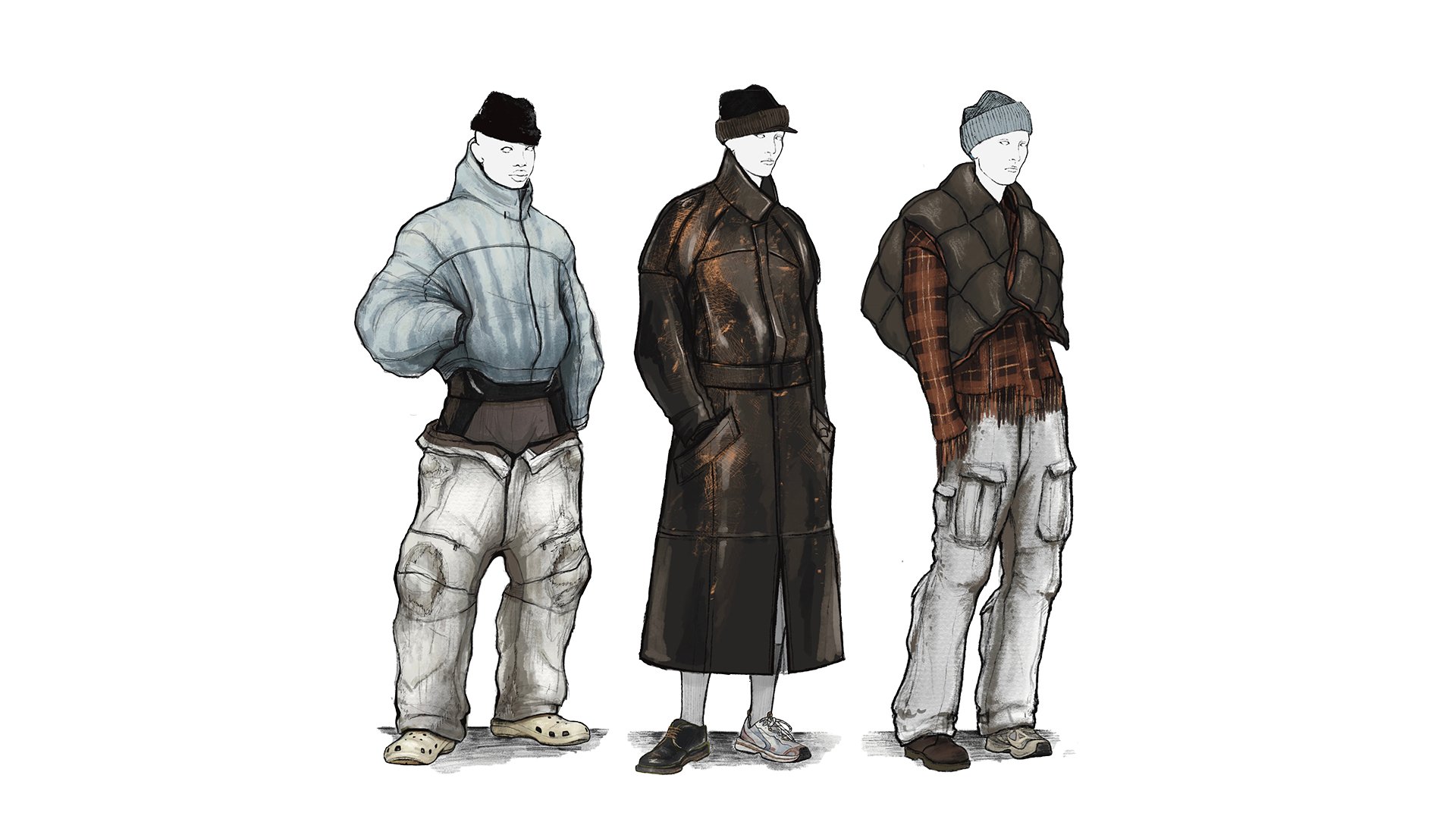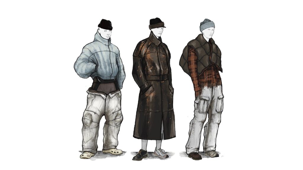 Tiger’s Redress Design Award collection, ‘The Wanderer/無依者’, is a reflection on the wealth disparity in fashion, and is inspired by the unique clothing and lifestyles of ‘street wanderers’. The collection uses upcycled materials including commonly discarded items such as towels and curtains from hotels, felt from airports, car seat covers, and discarded sofas and mattresses, which ensures a stable supply of materials while creating solutions for waste. For patterns, they consider not only aesthetics, which they believe is one of the most important factors for consumers, but also versatility and practicality.