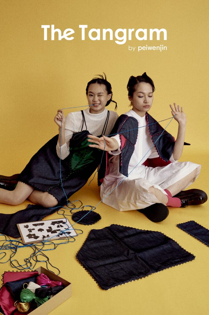 The Tangram 「七巧板」是我可持续时尚品牌peiwenjin的一条专利实验系列。它引入了一种零废弃的模块化系统,灵感来自我童年的玩具——七巧板。这个系统允许通过简单的穿线过程组装和重新配置服装和配饰,创造出一种循环的、互动的、无限适应的穿着体验。它提供了一种建立可持续衣橱的新方式,同时拥抱趣味、多样化和个人表达的元素。