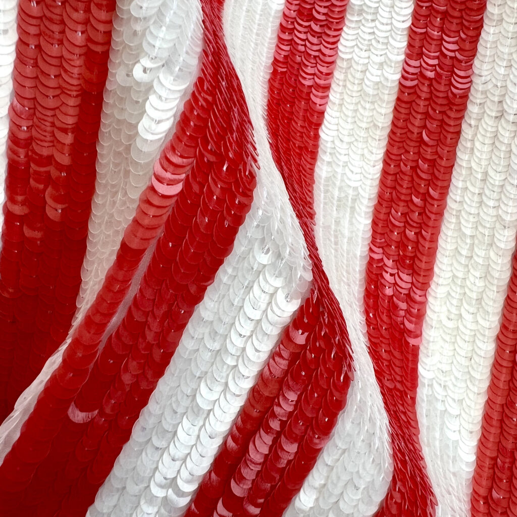 我對珠片的興趣是在倫敦時裝學院攻讀環境與時尚碩士學位時萌發的。我的碩士作品《Everyday was Special》研究了時裝材料的適當耐用性,特別是珠片。我認為市場上應該有比合成珠片更可持續的材料,因此開始努力創造珠片!